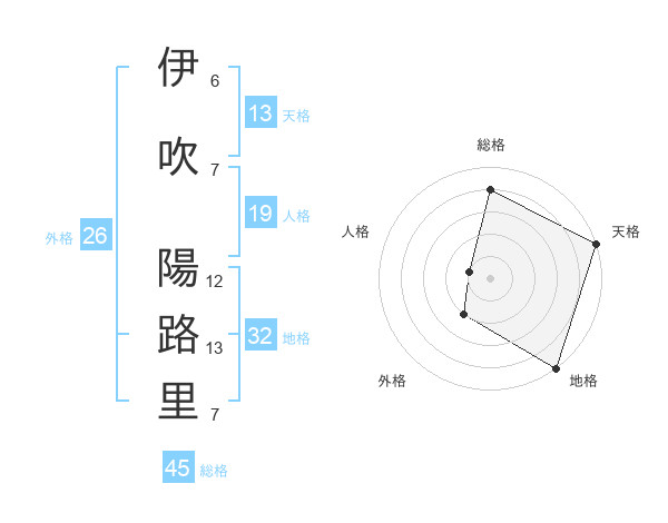 伊吹 陽路里さんを姓名の画数から五運を鑑定