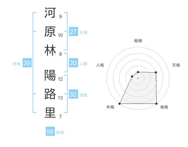 河原林 陽路里さんを姓名の画数から五運を鑑定