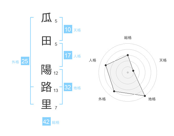 瓜田 陽路里さんを姓名の画数から五運を鑑定