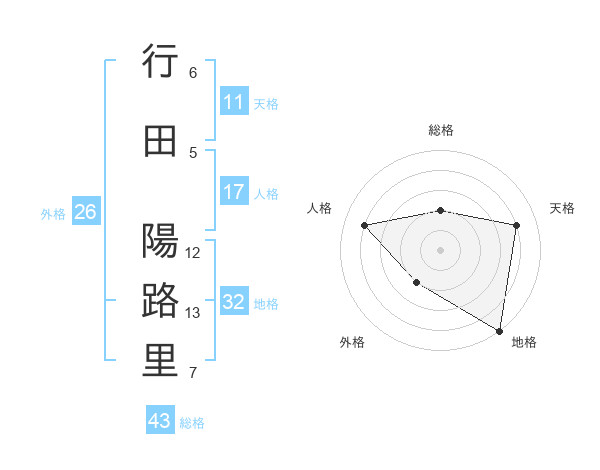 行田 陽路里さんの総格は43画の2点!