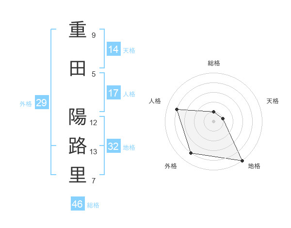 重田 陽路里さんの天格は14画の1点!