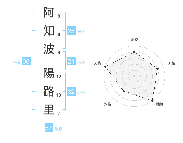 阿知波 陽路里さんを姓名の画数から五運を鑑定