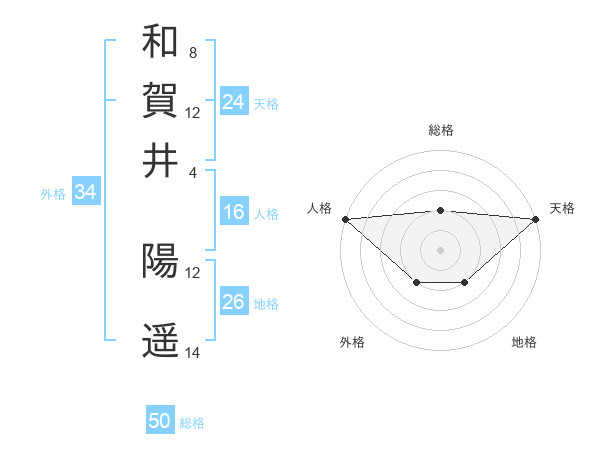 和賀井 陽遥さんの天格は24画の5点!