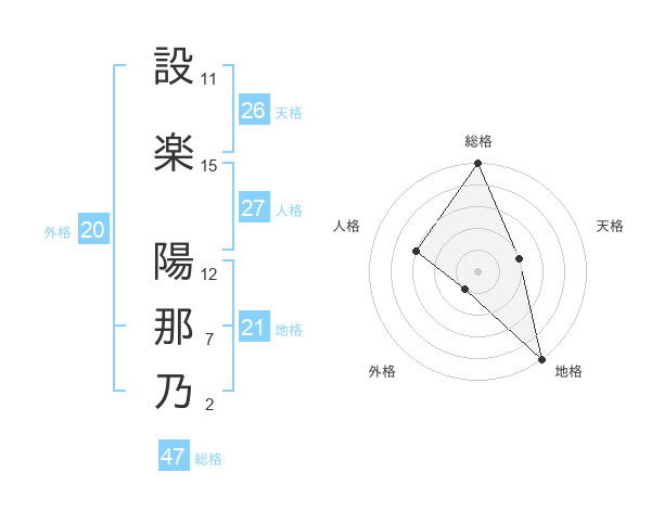 設楽 陽那乃さんを姓名の画数から五運を鑑定