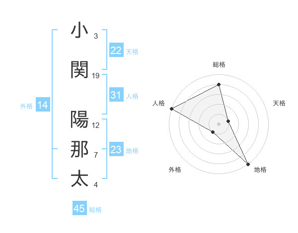 小関 陽那太さんを姓名の画数から五運を鑑定