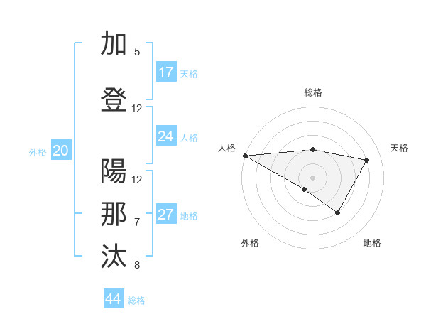 加登 陽那汰さんを姓名の画数から五運を鑑定