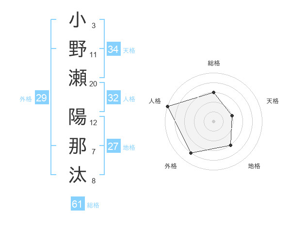 小野瀬 陽那汰さんを姓名の画数から五運を鑑定