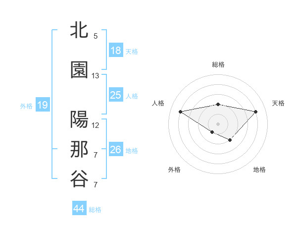 北園 陽那谷さんを姓名の画数から五運を鑑定