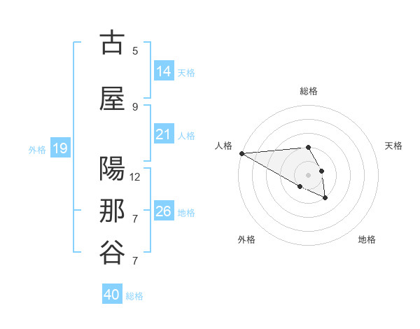 古屋 陽那谷さんを姓名の画数から五運を鑑定