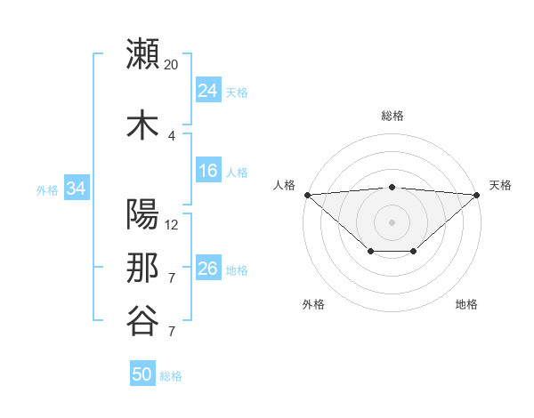 瀬木 陽那谷さんを姓名の画数から五運を鑑定