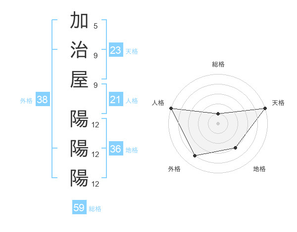 加治屋 陽陽陽さんを姓名の画数から五運を鑑定