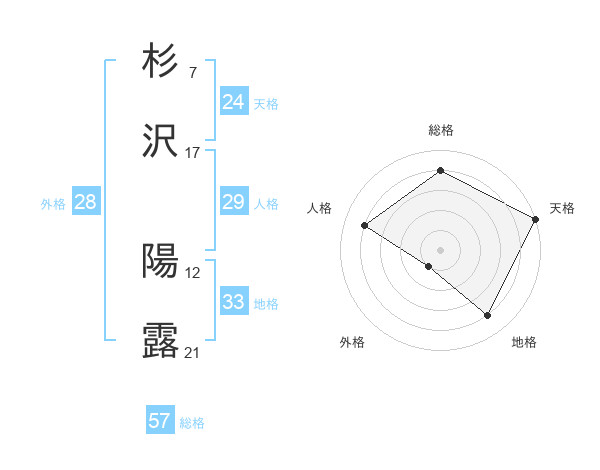 杉沢 陽露さんの総格は57画の4点!