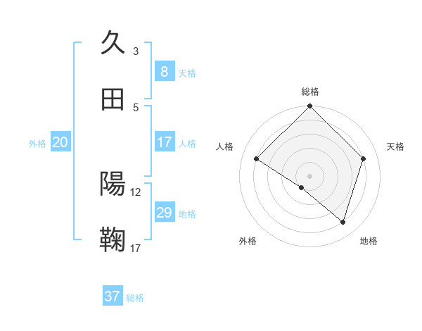 久田 陽鞠さんを姓名の画数から五運を鑑定