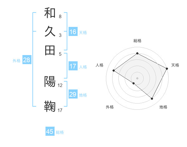 和久田 陽鞠さんを姓名の画数から五運を鑑定