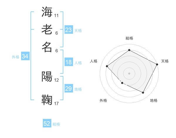 海老名 陽鞠さんの総格は52画の4点!