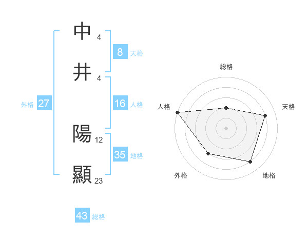中井 陽顯さんの総格は43画の2点!