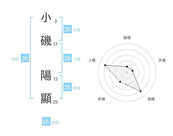 小磯 陽顯さんを姓名の画数から五運を鑑定