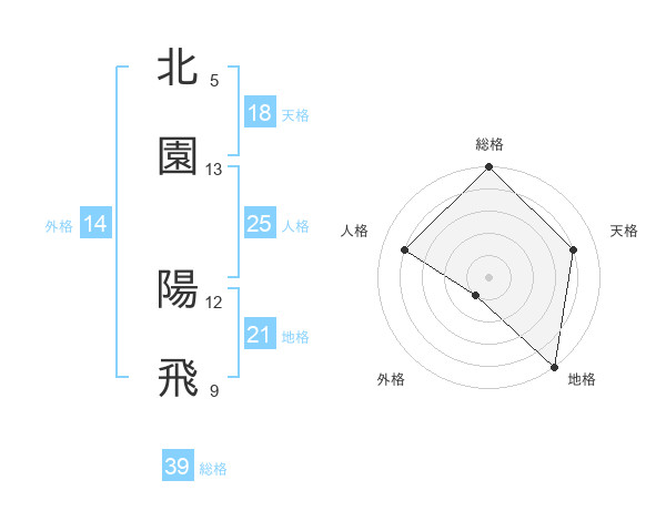北園 陽飛さんを姓名の画数から五運を鑑定