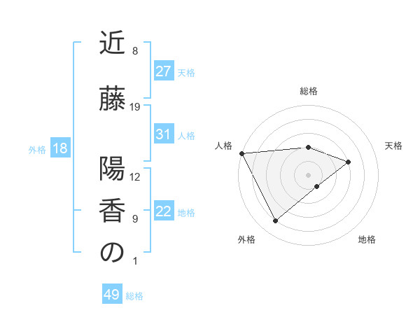 近藤 陽香のさんの総格は49画の2点!
