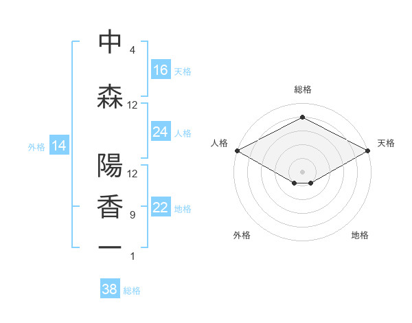 中森 陽香ーさんを姓名の画数から五運を鑑定