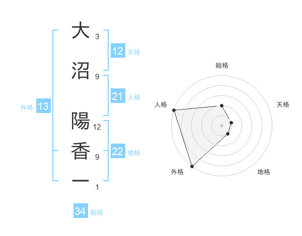 大沼 陽香ーさんの外格は13画の5点!