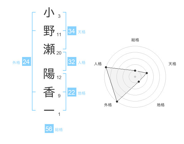小野瀬 陽香ーさんを姓名の画数から五運を鑑定