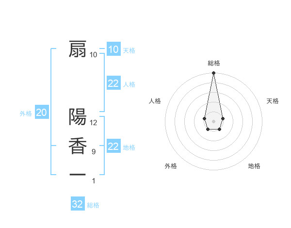 扇 陽香ーさんを姓名の画数から五運を鑑定