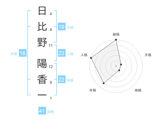 日比野 陽香ーさんを姓名の画数から五運を鑑定