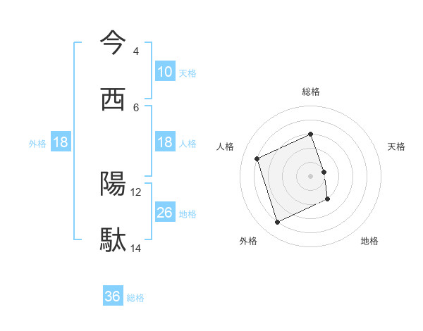 今西 陽駄さんを姓名の画数から五運を鑑定