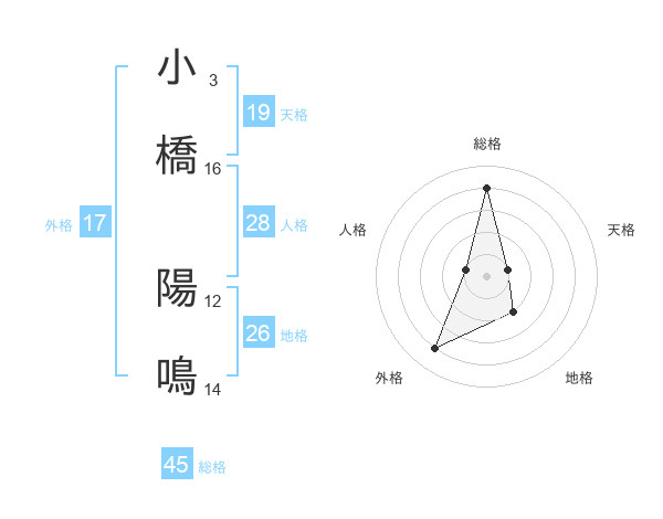 小橋 陽鳴さんを姓名の画数から五運を鑑定