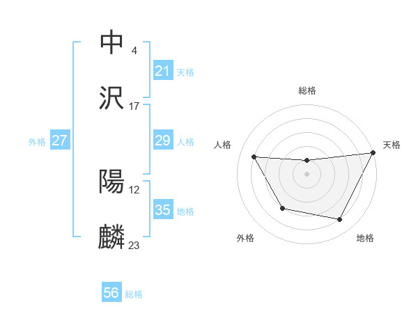 中沢 陽麟さんを姓名の画数から五運を鑑定