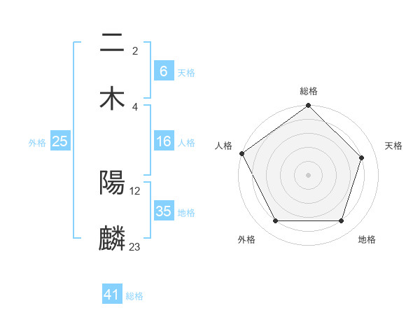 二木 陽麟さんの総格は41画の5点!