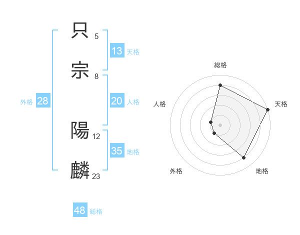 只宗 陽麟さんの天格は13画の5点!