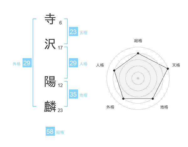 寺沢 陽麟さんを姓名の画数から五運を鑑定