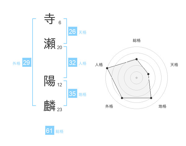 寺瀬 陽麟さんの天格は26画の2点!