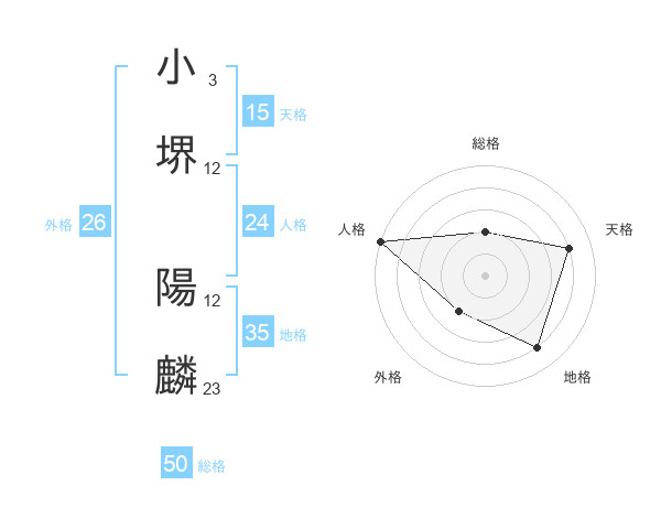 小堺 陽麟さんの総格は50画の2点!