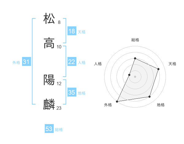 松高 陽麟さんを姓名の画数から五運を鑑定