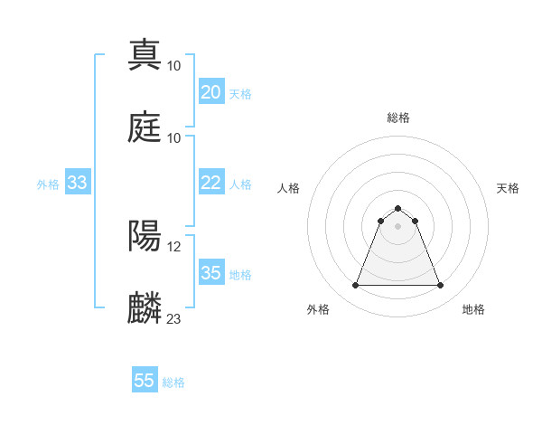 真庭 陽麟さんの総格は55画の1点!