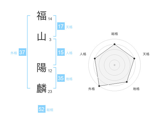 福山 陽麟さんの総格は52画の4点!