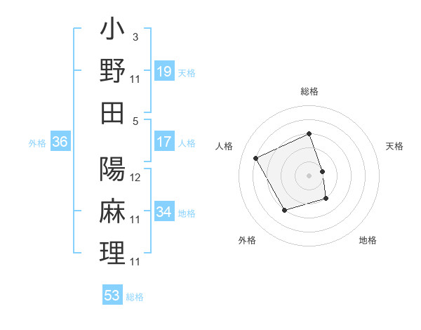小野田 陽麻理さんを姓名の画数から五運を鑑定