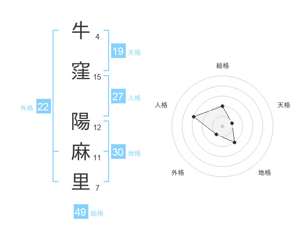 牛窪 陽麻里さんの総格は49画の2点!