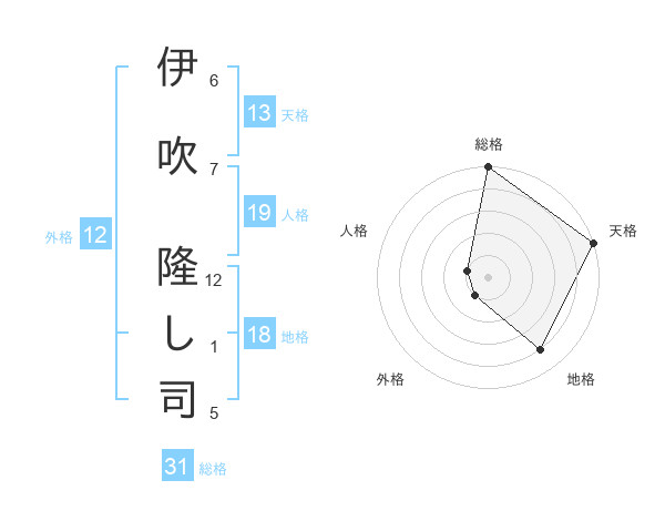 伊吹 隆し司さんを姓名の画数から五運を鑑定