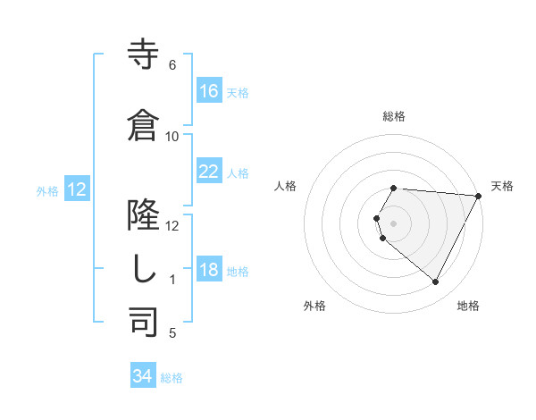 寺倉 隆し司さんを姓名の画数から五運を鑑定