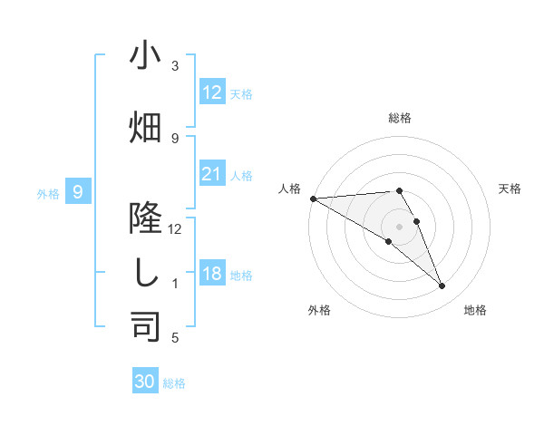 小畑 隆し司さんを姓名の画数から五運を鑑定