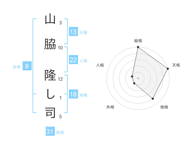 山脇 隆し司さんの総格は31画の5点!