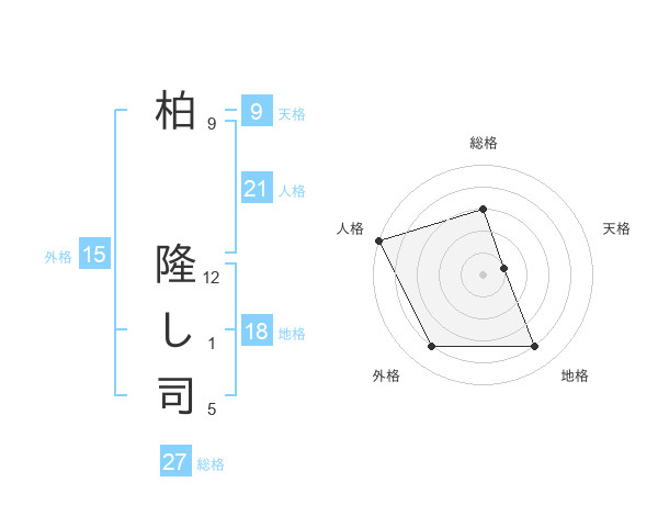 柏 隆し司さんを姓名の画数から五運を鑑定