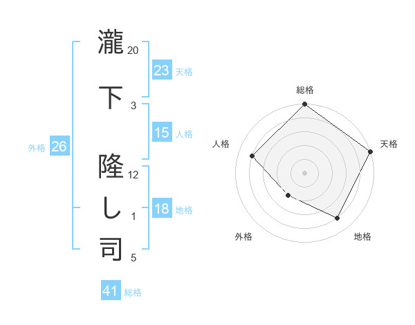 瀧下 隆し司さんを姓名の画数から五運を鑑定