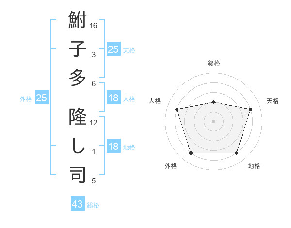 鮒子多 隆し司さんを姓名の画数から五運を鑑定