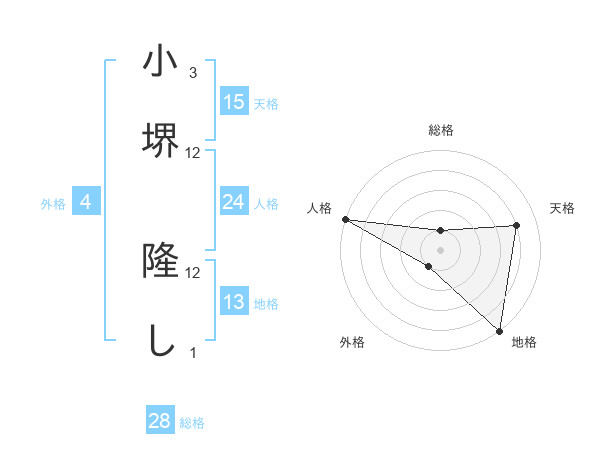 小堺 隆しさんの地格は13画の5点!