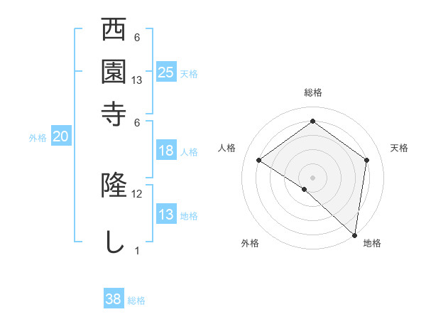 西園寺 隆しさんの外格は20画の1点!